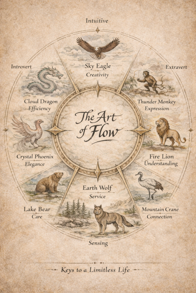 The combination of these qualities leads to 8 flow profiles. Some of you will be familiar with systems of personality profiling similar to this, and there are many that are actually identical – including wealth dynamics, and it is very closely connected to the iiching and jungian psychology as well. I suspect the personality types of ancient greek medicine are probably also the same.